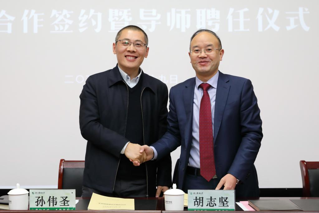 孙伟圣、胡志坚分别代表双方签订了院所战略合作框架协议。