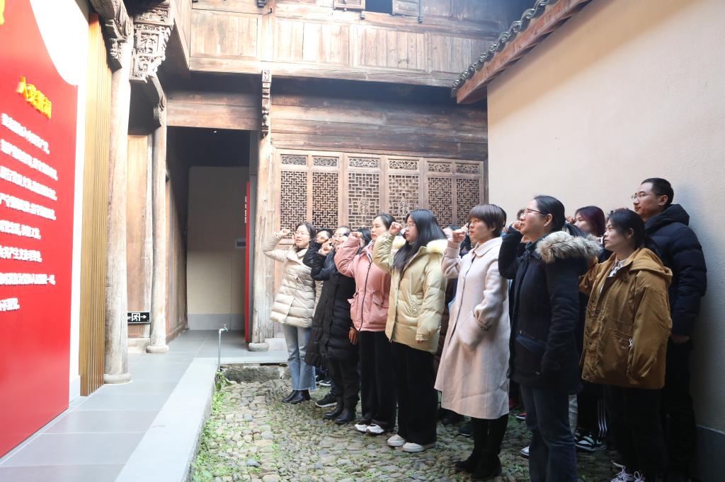 师生党员参观了新四军纪念馆,馆内陈列着大量的珍贵文物与图片,展示了共产党人的优良作风、体现了中华民族自强不息意志的“铁军精神”。党员们怀着崇敬的心情重温了过去那段峥嵘岁月,感受了新四军战士们顽强拼搏的英雄气概和舍生忘死的革命情怀。随后,党员们举行了庄严的入党宣誓仪式,重温了入党誓词。