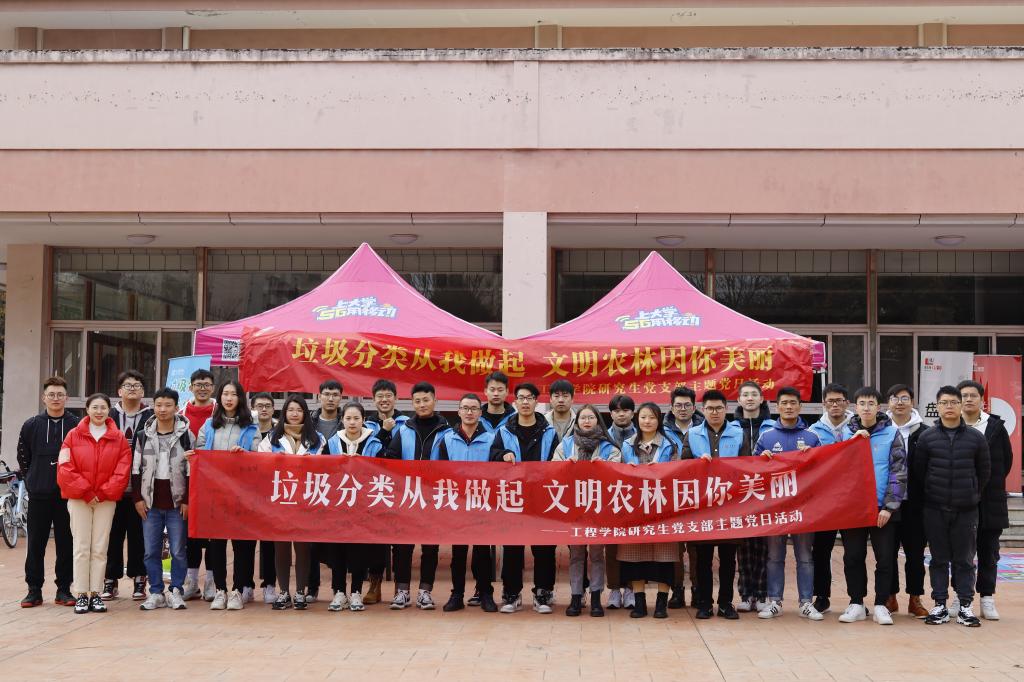 为深入贯彻党的十九届五中全会精神,以更加昂扬的姿态和实际行动迎接学校第三次党代会胜利召开,号召师生形成“厉行节约,垃圾分类”的思想自觉和行动自觉,充分发挥党员的引领示范作用,12月4日-5日,工程学院木材科学与技术学科研究生党支部、机械工程学科研究生第一党支部、机械工程学科研究生第二党支部、农业工程学科研究生党支部组成4支志愿者小队,60余名党员、入党积极分子参加了“青春献礼党代会,垃圾分类党员行 ”主题党日活动。