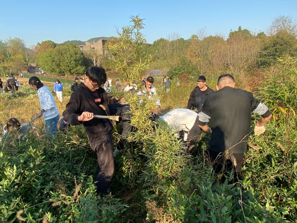 活动中,以各支部为单位,分区域进行杂草清除。秋冬交接的果木园杂草丛生,全体党员展现出不怕脏、不怕累、不怕苦的劳动精神风貌。虽然实践田里的泥土粘满了每个人的鞋和裤脚,杂草枯叶和汗水也挂在了每位党员的脸颊上,但是大家依然仔细地清理着每一棵杂草。经过3个多小时的辛勤劳动,党员生态实践田内的杂草被清除干净,生态实践田在大家的齐心协力下焕然一新。