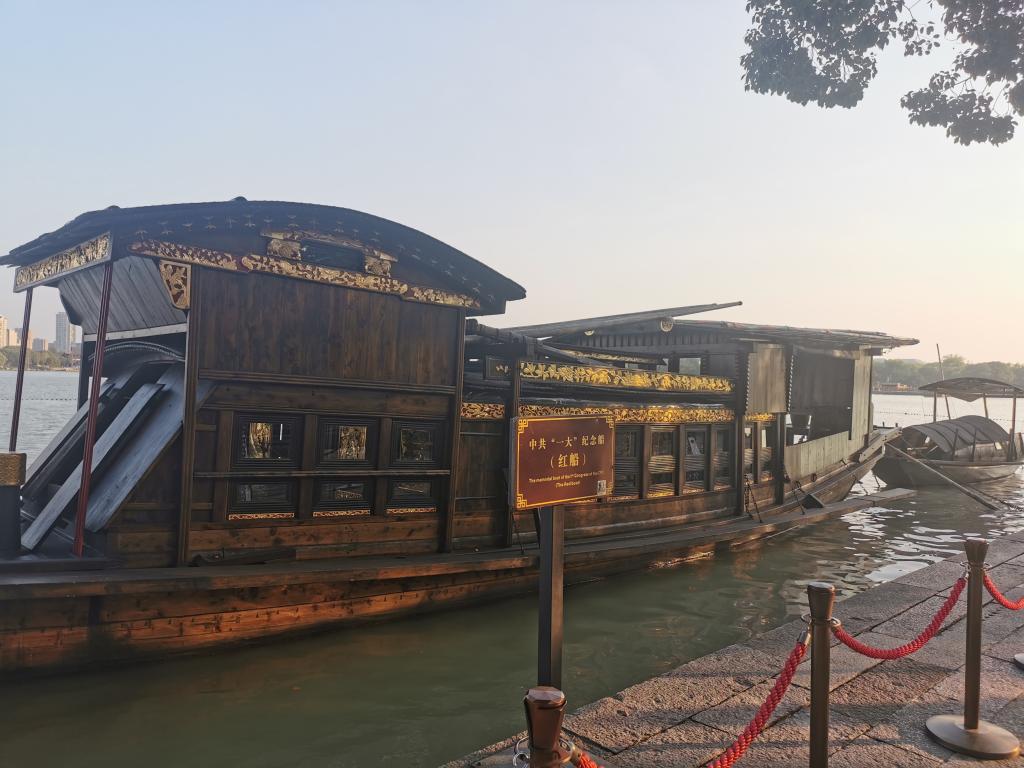 展品铭刻历史,成就永驻人心。离开红船后,党员们来到了南湖革命纪念馆。大家先后参观了“开天辟地”、“探索救亡图存道路”、“中国共产党成立”等展厅,纪念馆中的书籍、图片、视频、文物等珍贵史料让学生党员们再次感受那激情澎湃的一刻,跟随着党的发展和奋斗历程党员们认真观看每一件历史展品,详细阅读相关史实介绍,仔细倾听工作人员讲解,真切感受到无数革命先烈为党和人民事业大义凛然、前赴后继、不畏牺牲矢志追求理想、坚定革命信念的革命精神。革命前辈们弘扬崇高理想、传承“红船精神”、不忘初心、牢记使命,争当排头兵的信念深入到每个党员的心中。尤其是解放后新中国蒸蒸日上的社会经济情况和巨大变化,有力地见证了党的事业成就,更加坚定了全体党员的理想信念,坚定了继承光荣革命传统的信心。党员们纷纷表示将开拓进取,努力学习工作,让学业和工作再上新台阶。
