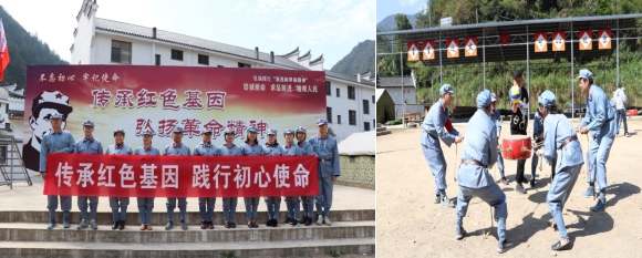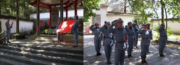 党员们首先来到了遂昌县燎原红色教育培训中心体验“红色文化”,开展红色拓展训练。大家穿上红军服、戴上红军帽,按照教官的口令分组并进行了军容、军纪、军歌、队列的训练,通过多种集体活动,模拟红军团队精神进行“演练”。