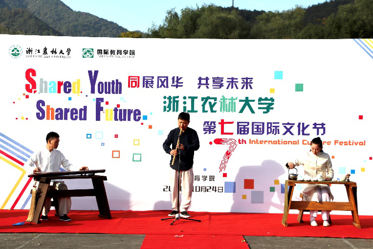 本届国际文化节以“同展风华,共享未来”为主题,将异国风情与中国文化相融合,在展示各国传统文化、习俗、美食环节基础上,还邀请了临安古琴研究会会长徐海蓉一行带来的笛子独奏与琴箫茶艺表演,以及学校茶文化协会与大学生食尚文化协会带来的特色展品,以更丰富的元素为中外学生搭建了一个同学习、同进取、同感知的平台。