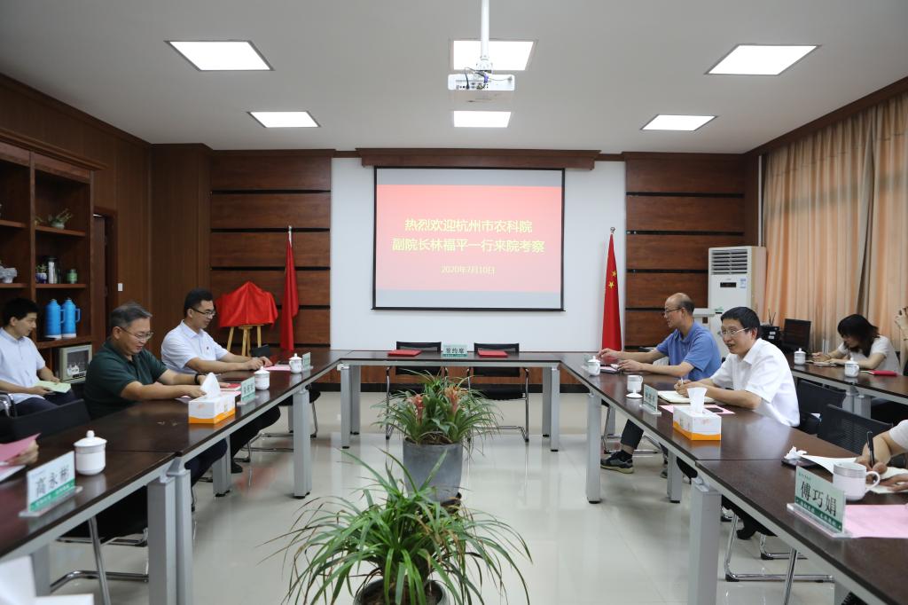 7月10日,杭州市农业科学研究院到农学院调研走访,杭州市农科院副院长林福平、农学院名誉院长朱祝军出席座谈会,会议由院党委书记董杜斌主持。
