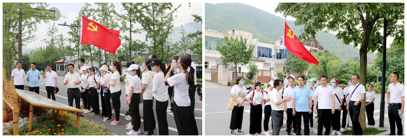 在“两山”理论纪念石碑前,党员们高唱《没有共产党就没有新中国》和《我和我的祖国》,庆祝建党99周年。在余村党群服务中心,同志们面向党旗,由支部书记赵阿勇领誓,重温入党誓词。赵阿勇表示,希望党员同志立足本职,再接再厉,用实际行动恪守对党的承诺,为学院和学校的发展建设贡献力量。
