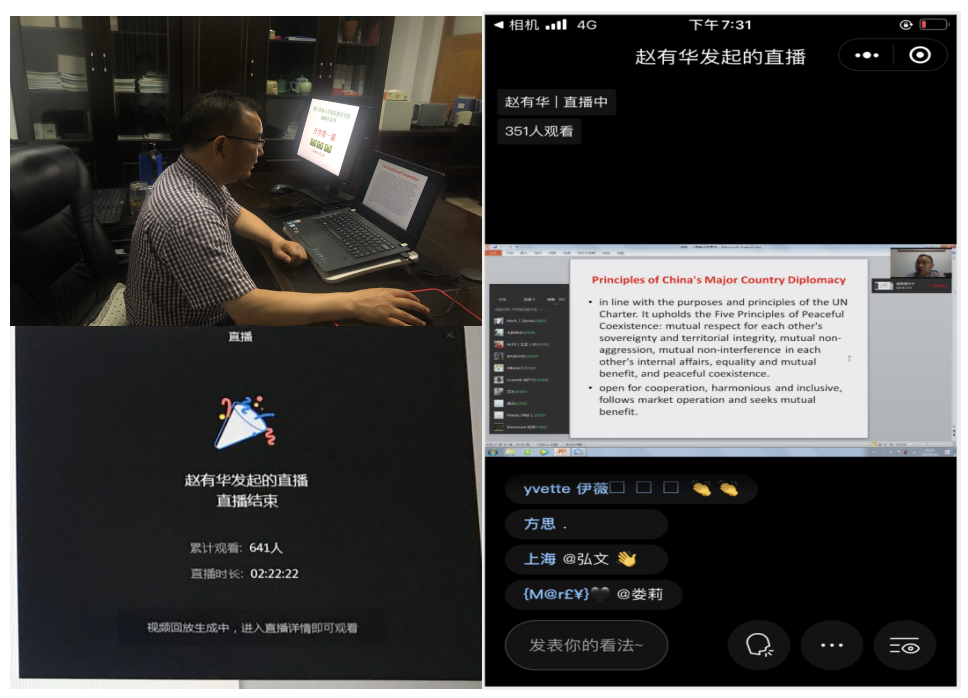 在BEAT365全面复学之际,国教学院在做好常态化疫情防控的同时,有计划分批次安排在国内的留学生返校学习。5月6日晚,国教学院院长赵有华使用企业微信直播平台在线讲授“开学第一课”,讲述了习近平总书记提出的“人类命运共同体”、中国和世界各国的合作抗疫故事,BEAT365在疫情防控中对国际生的关爱等内容,600多名师生在线观看了直播。