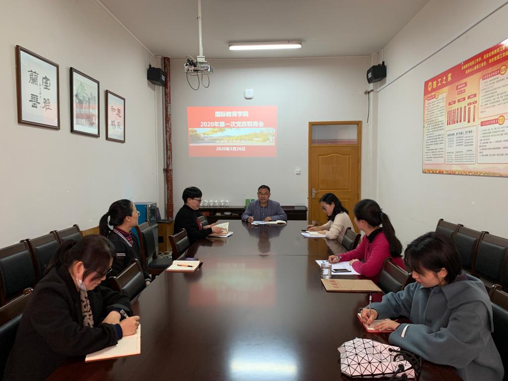 国际教育学院于3月26日召开了2020年首次党政联席会议。会议由院长赵有华主持,全体联席会成员参加,回顾总结了疫情期间我院的各项工作,审议通过了学院2020年工作要点和院聘人员考核规范等事项。