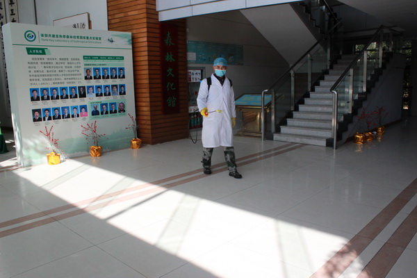 2月22日,后勤集团全面开展校园公共区域防疫消毒工作,为师生员工的健康平安保驾护航。