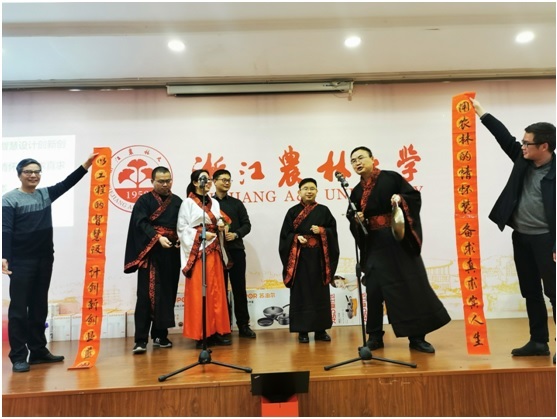 团拜会期间,师生们纷纷呈现了精心准备的文艺节目,形式、内容丰富多彩,整个过程欢声笑语不断,气氛活跃。其中,农业/机械工程学科自编自导自演的三句半“机械人的农林梦”,充分展现了学院师生团结进取、不负韶华的积极风貌;魔术表演“年年有鱼”,为大家呈现了一幕幕惊喜和好奇,送出了新春的美好祝愿;新年送福、游戏互动等环节,传递了大家喜悦、欢乐的心情,流露了彼此间的感恩、感谢与真诚祝福!