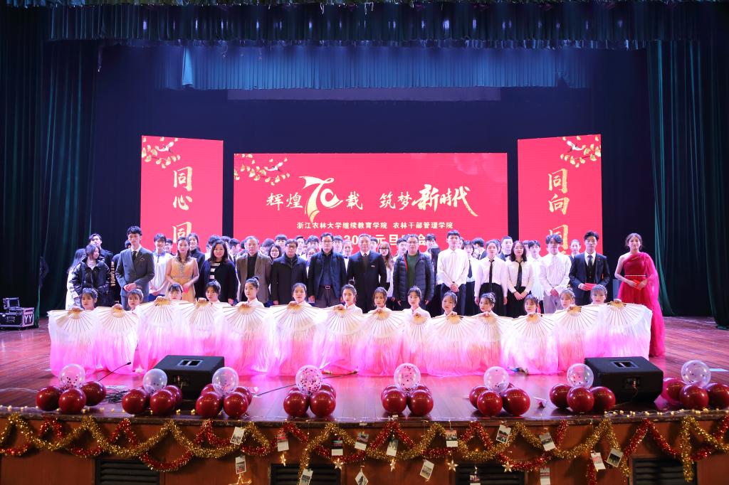 12月19日,继教学院在东湖校区影剧院举办“辉煌七十载,筑梦新时代”2020年元旦晚会。校党委副书记施美红,宣传部、后勤集团负责人,继教学院党政班子成员和全体师生700余人欢聚一堂,共同观看了本次晚会。