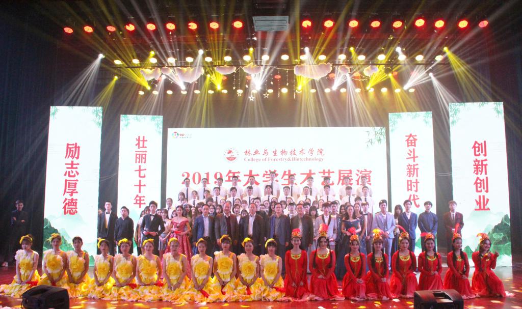 为庆祝新中国成立七十周年,展现当代大学生的青春风采,11月10日晚,“壮丽七十年,奋斗新时代”——林业与生物技术学院2019年大学生才艺展演在东湖校区举行。