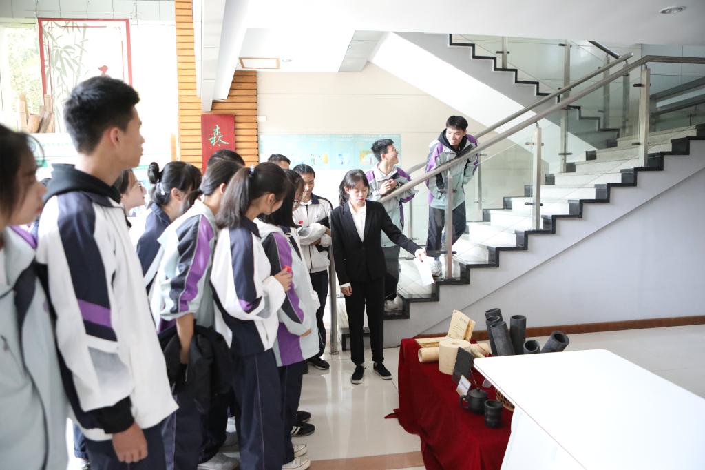 随后,在农学院老师、学生党员志愿者的引导下,天目高级中学师生分三组参观了森林文化馆、国家工程中心及动物医院等。一路参观走来,大家紧随讲解员的步伐,认真观看各点展示,面对一件件精美的各式标本、一台台精密的科研仪器、一项项创新的科研成果、一组组精致的设计作品……同学们眼里满是新奇与兴奋。