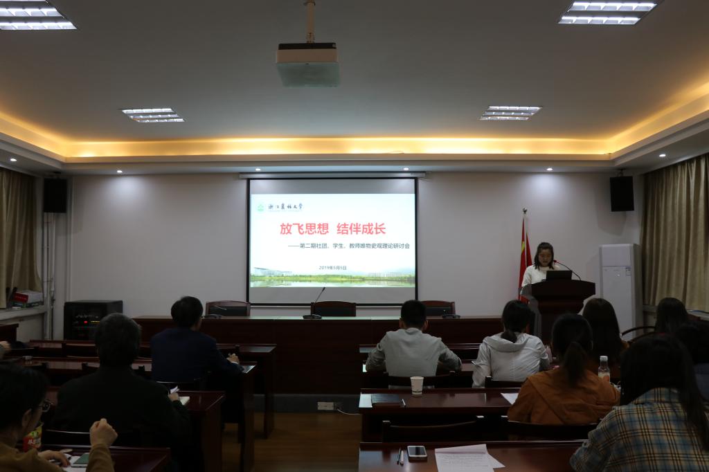 5月5日,马克思主义学院举行“放飞思想 结伴成长”第二期社团、学生、教师唯物史观理论研讨会。马克思主义学院教师以及大学生中国特色社会主义理论体系研究会、大学生习近平新时代中国特色社会主义思想研究会的研究生社团成员参加此次活动。