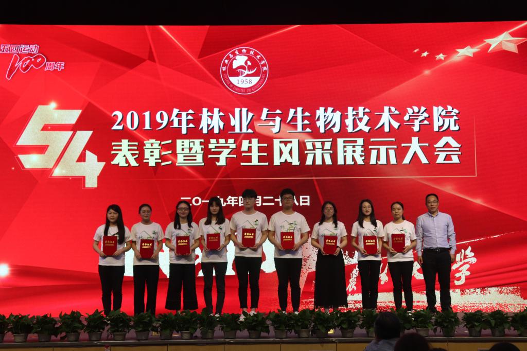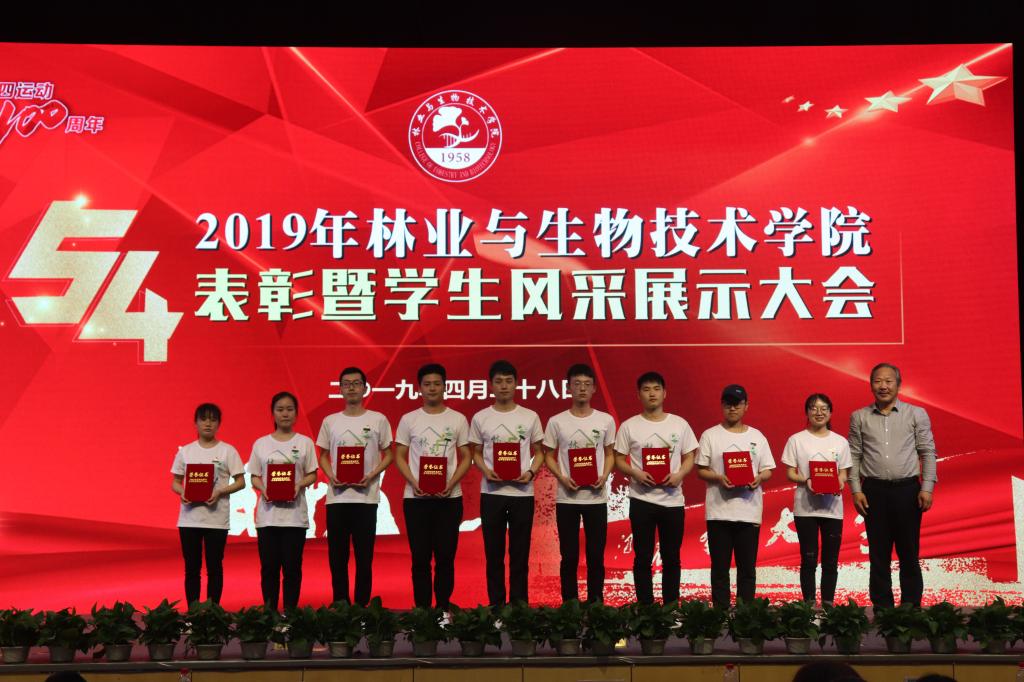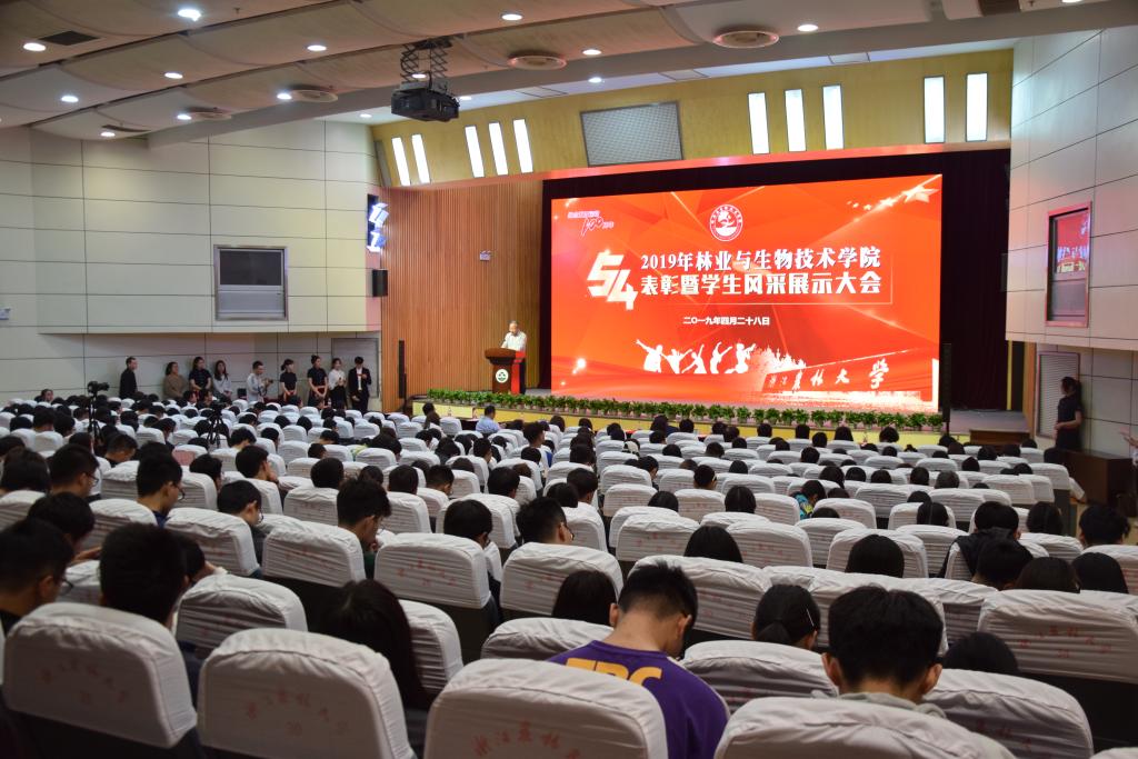 为纪念“五四”爱国主义运动100周年,选树典型、表彰先进,进一步鼓励广大青年学生积极践行社会主义核心价值观,用奋斗和担当筑就“青春梦”,4月28日晚,林业与生物技术学院举办2019年“五四”表彰暨学生风采展示大会。学院党政领导班子成员,各学科专业负责人、班主任、辅导员以及研究生和本科生代表近500人参加大会。