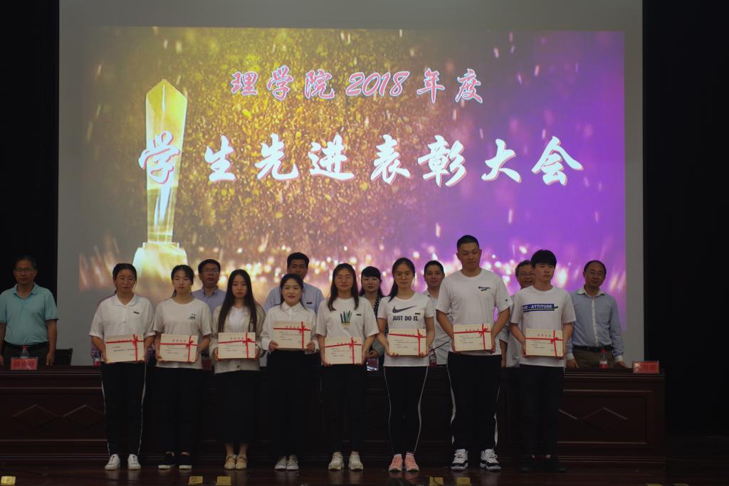 理学院2018年度学生先进表彰大会在学校校歌充满历史厚重感、积极昂扬的旋律中圆满结束。此次表彰大会对一年来各类先进集体和优秀个人予以表彰,展示了我院学子积极向上的青春风貌,同时也激励同学们不断追求卓越,以更加饱满的热情投入到今后的学习生活中。