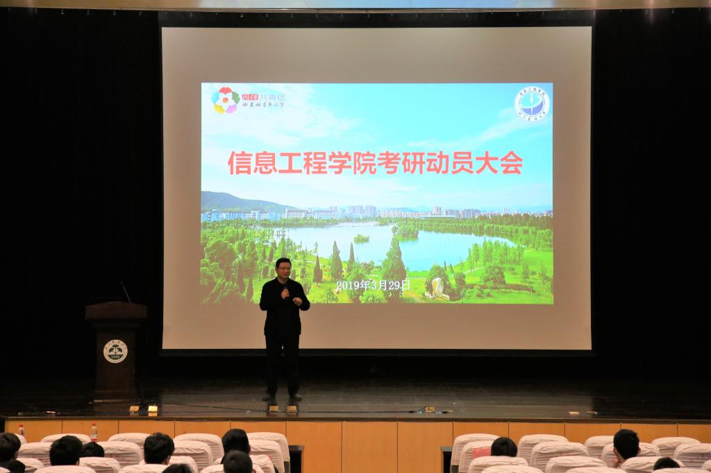 3月29日,信息工程学院在图书馆大报告厅举行考研动员大会,各专业负责人、学生办辅导员及2016级、2017级本科生参加会议。会议介绍了考研相关政策及今年考研情况,并由三位新晋研究生分享考研经历与心得。