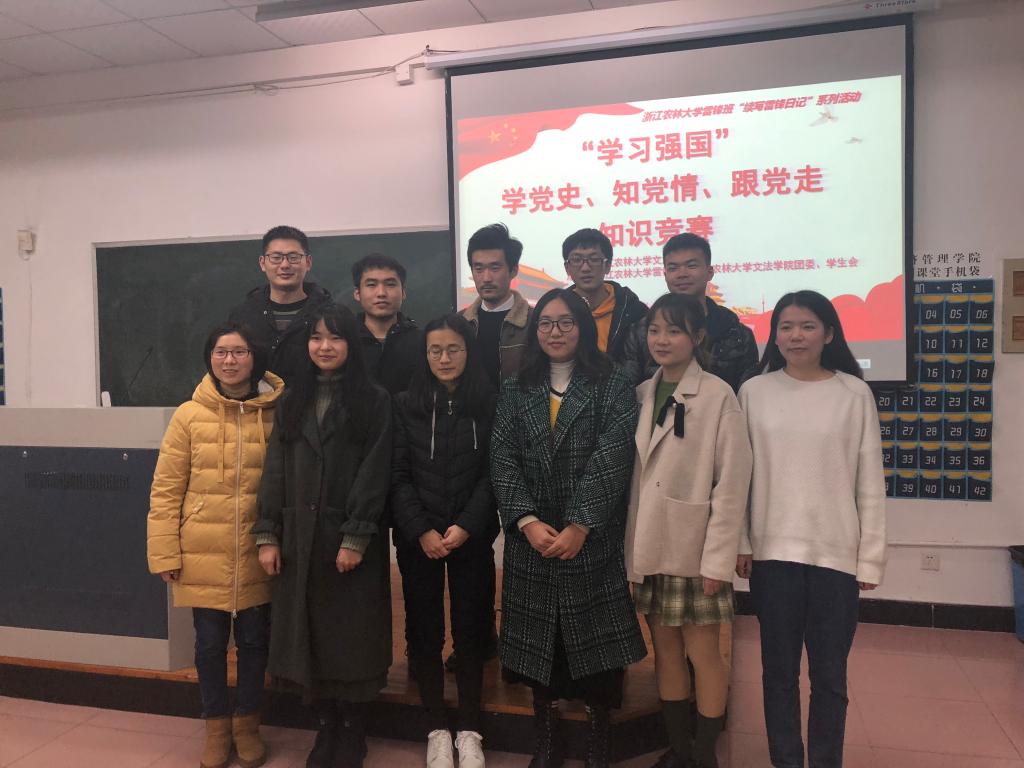 根据党员在“学习强国”平台上的学习情况,文法学院各学生党支部推举优秀党员代表各支部参加比赛。比赛设必答题、抢答题和填空题。赛场上各队选手斗志昂扬、你追我赶、力争上游。现场氛围热烈,最终角逐出一等奖1名,二等奖2名,三等奖3名。