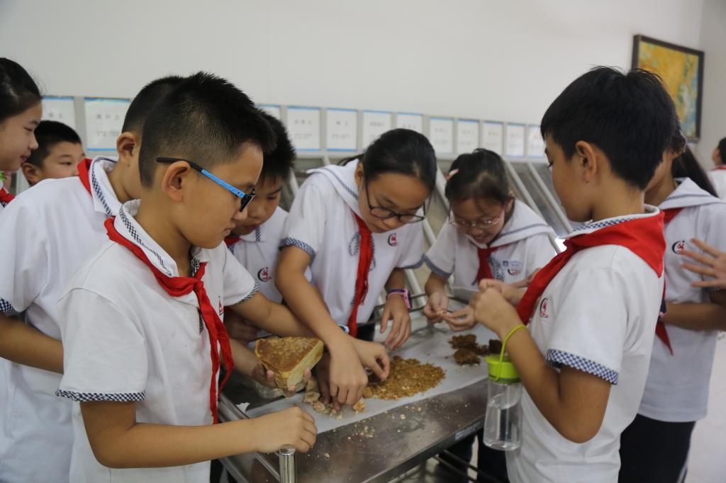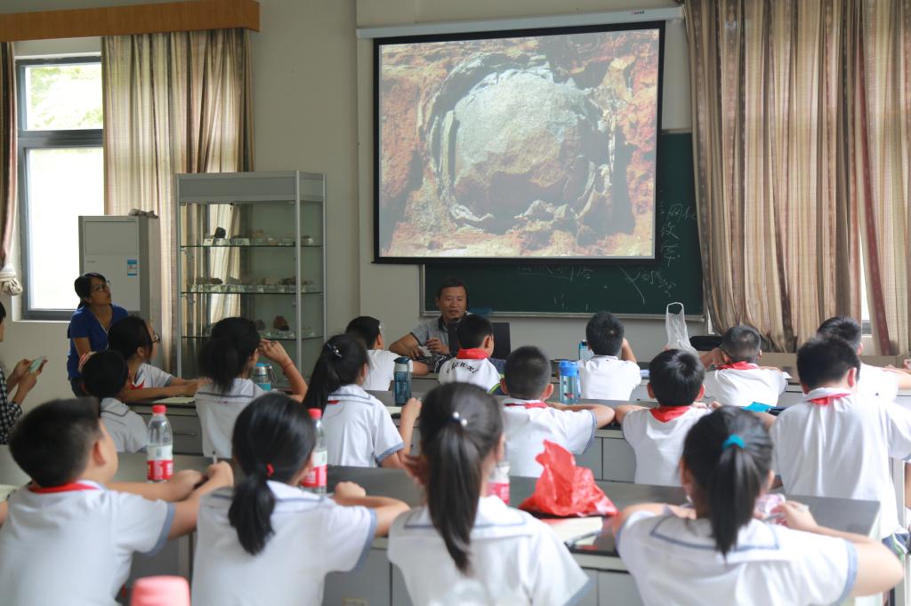 为让孩子们了解土壤知识,钱教授让五年级40多位孩子们带着自己各自在“横溪葡萄”“大明山银杏”“板桥香榧”“天目竹笋”“东坑茶叶”“昌化山核桃”种植地采摘的土壤样本走进了自己的实验室。钱教授专门精心准备了有关土壤专业知识的讲座,还带着孩子们走出教室亲手去摸摸土壤,捡捡岩石。经过钱教授两个多小时的耐心讲解,孩子们从理论与实践中收获满满。