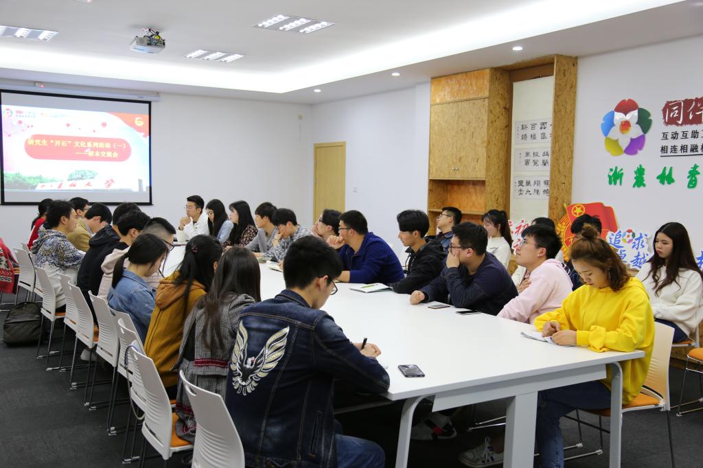 3月27日晚,研究生“开石”文化系列活动之研本交流会在集贤326“同伴”会议室举行。校研究生会、校学生会骨干成员参加了交流会。
