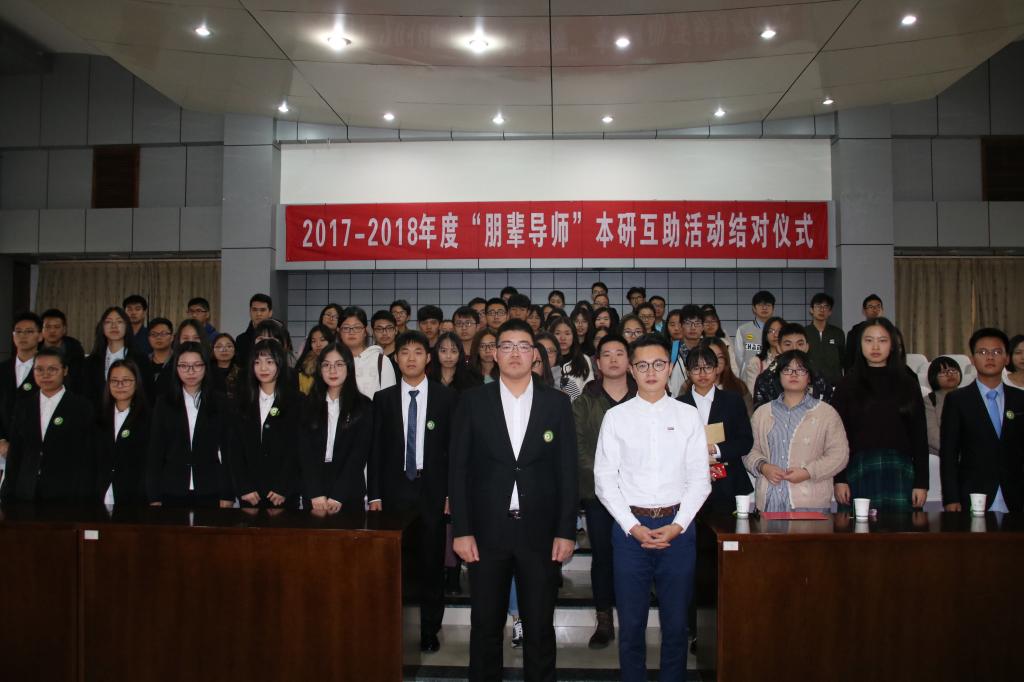 11月18日下午,2017-2018年度“朋辈导师”本研互助活动结对仪式举行。研究生导师、本科生学员等参加结对仪式。
