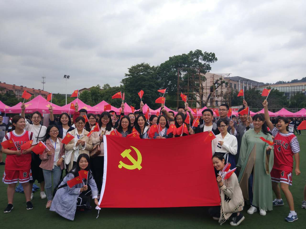 时值十九大即将胜利召开之际,同学们通过“点赞”献礼墙、与党旗合影等方式表达内心的喜悦。