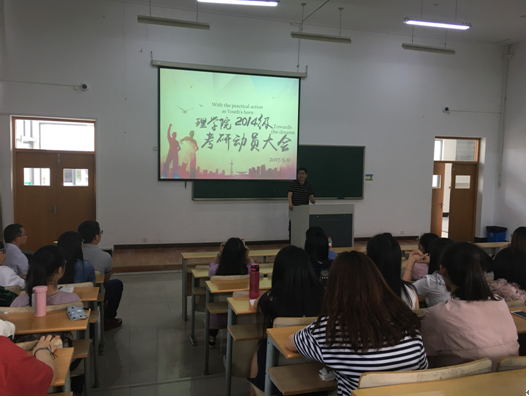 5月11日下午,理学院召开2014级本科生考研动员大会,学院院长周国泉等出席大会,各学科、专业负责人及2014级学生参加大会。