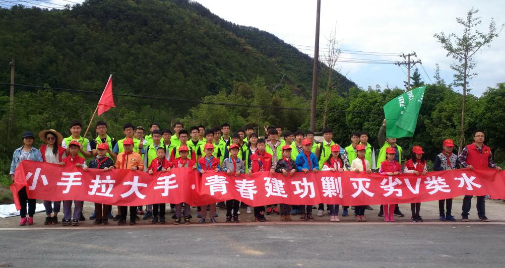 为响应省委省政府剿灭劣V类水活动号召,深入对接“双百双进”工作,弘扬“五四”精神。5月5日上午,信息工程学院分团委联合临安市清凉峰镇团委举行了“小手拉大手 青春建功剿灭劣V类水”志愿者活动。