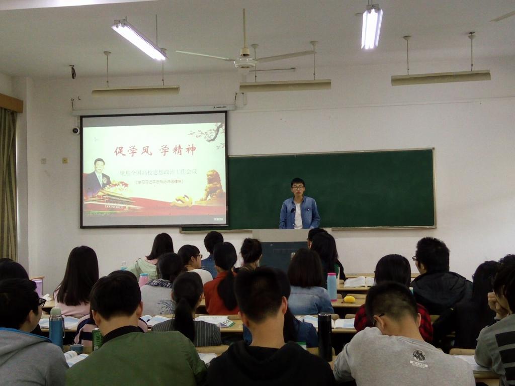各班级、团支部,围绕全国全省高校思想政治工作会议精神,根据学校、学院关于“文明课堂、文明寝室、文明行为”的活动要求,以学院“我为好学风代言·五个一行动”方案为蓝本,通过优秀毕业生学业规划典型汇报、班级大讨论、党员先锋岗、团队故事分享、特色学风方案展示等形式,围绕如何为学校本科教学审核性评估工作做贡献展开充分交流,强化思想认识,提升学生的校园主人翁意识和责任感。