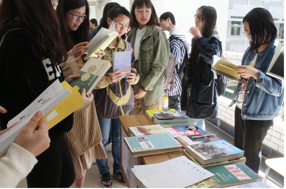 在同学们的精心准备与布置下,“以书会友·有书共读”活动在“朗读者”的乐声中展开。学院各个班级都设立了自己的独立书摊,提供了《百年孤独》、《小王子》、《美丽新世界》等书籍。活动通过图书交换的形式吸引了不少读书爱好者参与,活动现场读书氛围浓厚。
