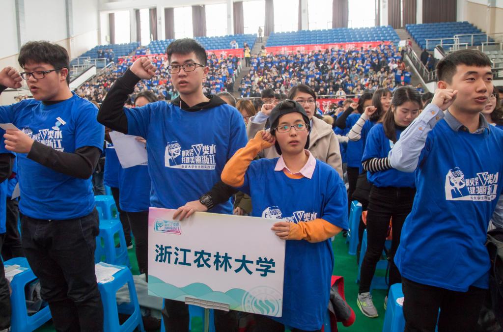 3 月18 日,BEAT36550名“生态志愿者”作为全省省属高校学生代表参加全省大学生“剿灭劣V类水 共建美丽浙江”主题实践活动出征仪式。省委常委、宣传部长葛慧君宣布主题实践活动正式启动,副省长成岳冲出席出征仪式。