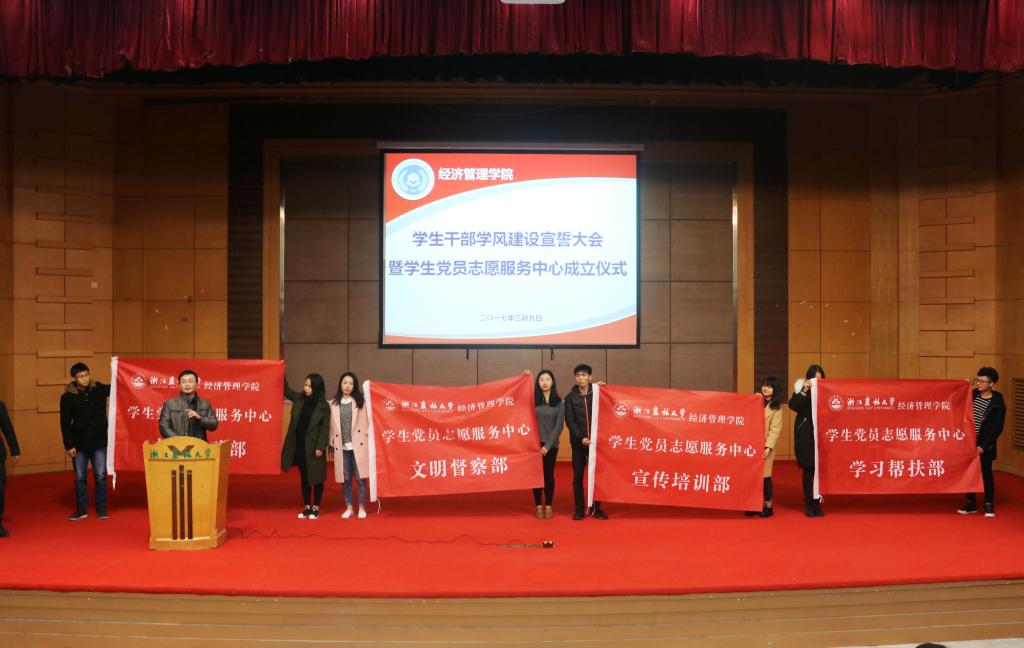 本学期,经济管理学院制定《学院学生党建工作促学风建设实施方案》,成立学生党员志愿服务中心,推动文明课堂、文明寝室、文明行为“三个文明”建设。推行党员发展“成长指数”管理,提升学生党员队伍源头质量。通过对学生党员志愿服务的机制进行顶层设计,建立健全学生党员志愿服务的常态化、制度化,努力在接下来的教学审核评估中发挥作用。