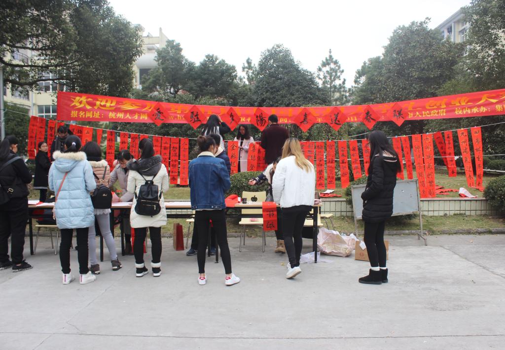 日前,经管学院学生志愿者与学校书法协会在联建公寓开展“激扬文字、书写春联”活动。活动现场,人头攒动,红纸翻飞,墨香四溢。热闹的气氛,喜悦的心情,真诚的祝福,让冬日变得格外温暖。志愿者们为老师、同学和新大陆敬老院的老人们送上春联,此次活动送出春联60多幅,一幅幅春联饱含着感恩与爱的新春祝福,传递着尊师重道、尊老敬老的中华民族传统美德。