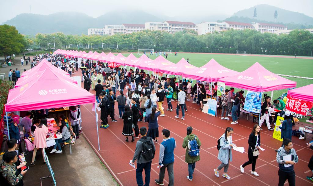 各个社团摆摊宣传,各出奇招,使出浑身解数“招兵买马”,现场人山人海,热闹非凡,成为校园里一道靓丽的风景线。包括舞蹈协会在内的兴趣爱好类社团现场表演,才华尽展,用歌声和舞姿让同学们驻足欣赏。许多社会公益类社团在摊前摆满了盆栽等绿色生态的小礼品吸引来往人群。思想政治类社团耐心地为有兴趣的同学耐心专业知识,航模社等科技创新类社团则纷纷展示出最新的科技成果,卡丁车、金属探测车、无人机等竞相出场。