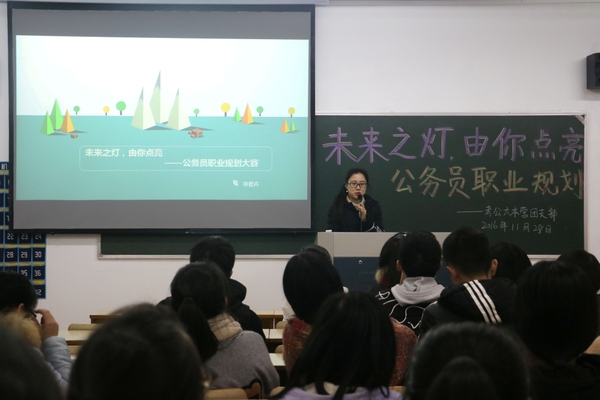 11月28日,经管学院考公大本营团支部主办的公务员职业规划交流会在衣锦教学楼举行。