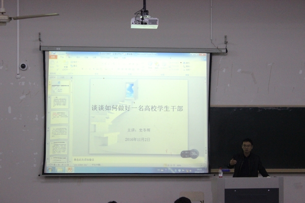 学院负责人围绕如何做好一名高校学生干部这一主题,从高校学生的使命职责、高校学生干部中存在的一些问题、高校学生干部应具备的素质能力以及如何成为一名优秀的高校学生干部等几个方面进行了详细讲述;阐述了学生干部工作对于学生综合素质发展的重要性以及对校园建设的重要意义,鼓励学生干部要充分发挥示范榜样作用。