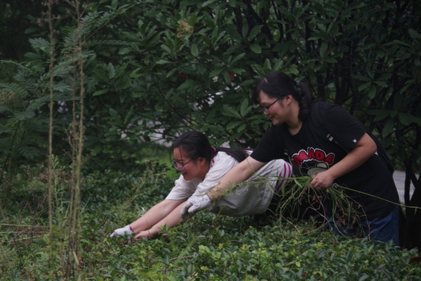 9月22日下午,文化学院组织大一新生在学五附近的绿地进行本学期第一次绿地养护活动。共计45名同学参加了本次活动。
