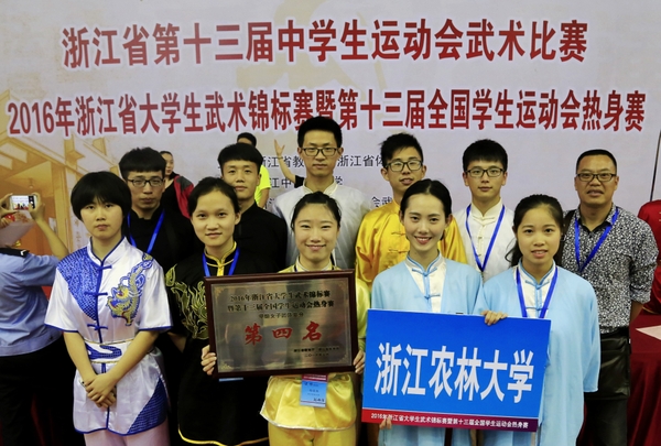 5月13日至15日,2016年浙江省大学生武术锦标赛暨第十三届全国学生运动会热身赛在浙江中医药大学举行。本次锦标赛共有来自27个高校的196名武术运动员参加经过。