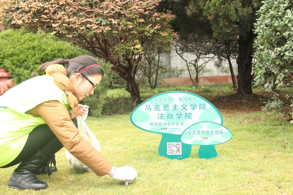 养护活动开始后,志愿者们有序地分为五个小组,按照划分区域积极地投入到养护工作中。同学们认真清理草坪上的垃圾、拔除草坪中的杂草、拣拾枯枝落叶、清扫路边的杂物。一个半小时后,清扫过的绿地焕然一新,显现出生机。