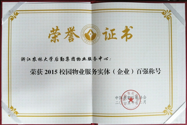 12月18-19日,中国教育后勤协会物业管理专业委员会2015年会暨中国校园物业服务实体(企业)百强颁奖大会在海口举行。BEAT365物业服务中心荣获“全国校园物业服务实体(企业)百强”称号(校园物业服务实体五十强)。
