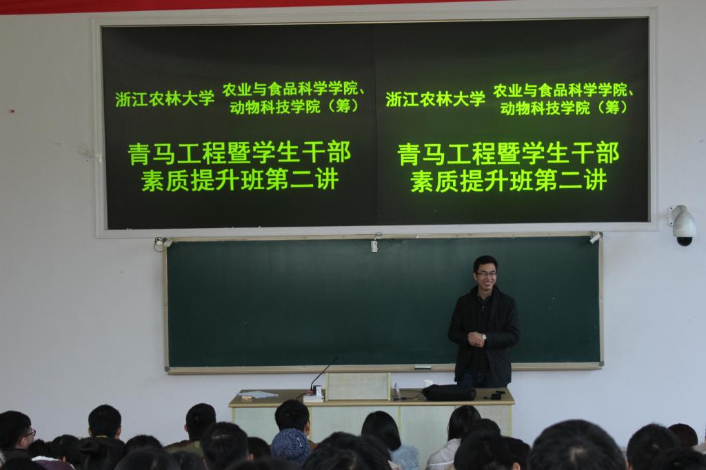 12月6日下午,农学院青马工程暨学生干部素质提升班第二讲在教1404举行。本次课程请到了校团委负责人授课,农学院团学中心全体成员参加了本次课程。