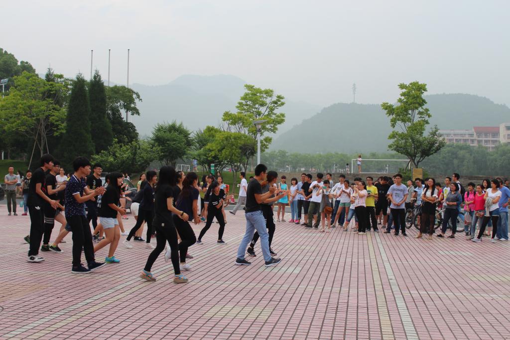 快闪,即“快闪行动”的简称,可视为一种短暂的行为艺术。简单地说就是:许多人约定一个指定的地点,做一个指定的不犯法却很引人注意的动作或舞蹈,然后赶快走人。本次快闪活动精心准备近一个月,通过东湖食堂门口的展示,为学校的夏日增添了新的活力,给浙农林大之夏注入了新亮点。