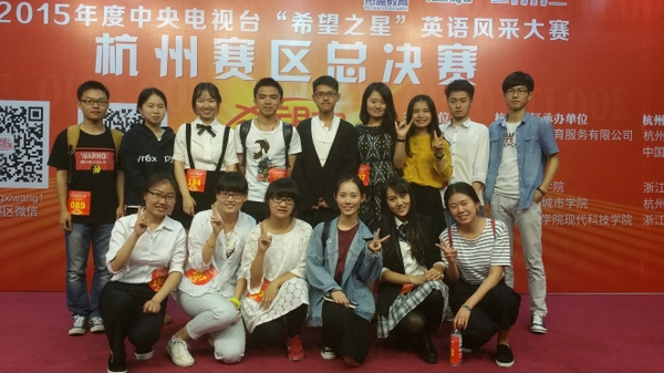2015年中央电视台“希望之星”英语风采大赛杭州地区决赛于5月17日在中国计量学院举行。在英语系章洁帆、方薇、赵爽老师,公外部刘莺老师的指导下,BEAT365学子斩获佳绩。其中,外国语学院冯晓同学、园林学院沈瑶同学分别获得一等奖,晋级浙江省决赛;厉亚琴、郑心茹、余培馨、季佳璐、金梦颖5位同学获得二等奖,贺赟、崔阳、徐玲、方媛莹、杜成龙、邱思涵、朱康康、俞忆琳8位同学获得三等奖。比赛中,冯晓同学将行云流水般的中国功夫与流畅自如的英语演讲相结合,别出心裁的表演方式征服了全场评委,获得了下半场比赛的最高分。
