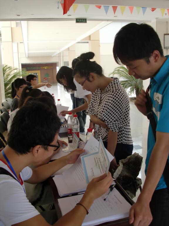 上午7:30开始,活动中心集贤学院报名点陆续有家长陪同新生前来报到。从新生的迎接、报到、相关资料的领取、陪同前往寝室以及一卡通充值和热水卡的办理等等,学生干部们始终热情洋溢、微笑服务。整个迎新过程,校会所有工作人员本着“以最良好的精神面貌和服务态度迎接到来的新生和家长”的原则,耐心细致地向新生及其家长介绍学校的基本情况并回答他们提出的相关问题。