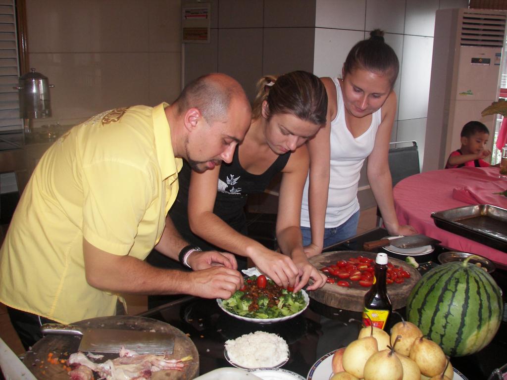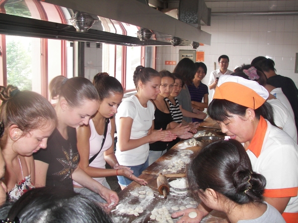 在西径美食城相关负责人的带领下,留学生们兴致勃勃的参观了食堂的各个操作间,详细了解了中国高校餐饮的流程体系,并对BEAT365食堂整洁有序的操作环境表示称赞。参观结束后,留学生们饶有兴致地向食堂面点师傅“拜师学艺”,认真学习如何擀面、包饺子等技巧。后又组成四只代表队参加了接待中心员工技能比武,气氛相当热烈。