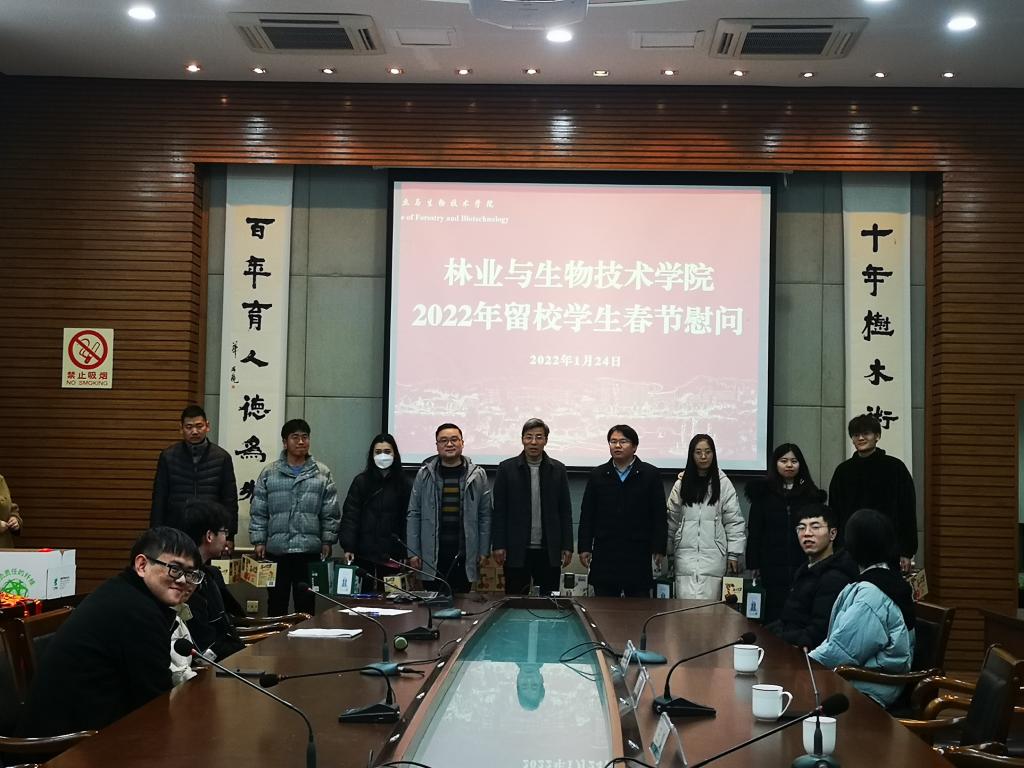 1月24日,农历腊月二十二,林生院组织开展2022年留校学生春节慰问祝福活动,喜迎新春佳节。学院党政领导班子成员、辅导员以及52名春节留校本科生和研究生参加慰问活动。