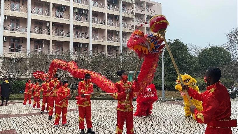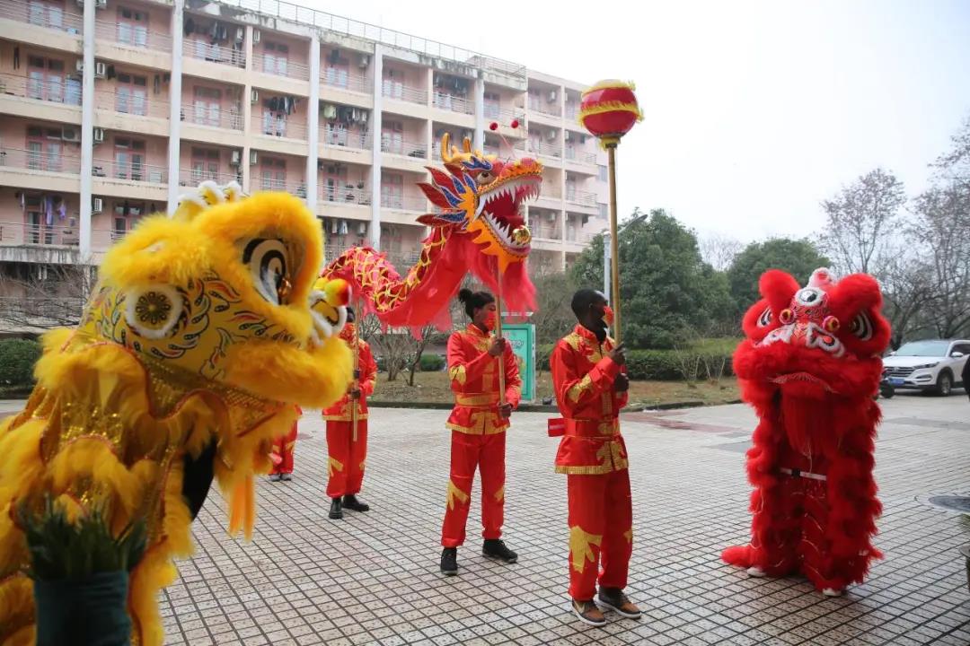 活动现场,教师们与国际生围在一起,做花灯、写福字、贴春联,其乐融融,寄希来年顺顺利利,福气满满,感受浓浓的“中国传统风情”。另一边,国际生们准备了别开生面的舞龙与舞狮表演。