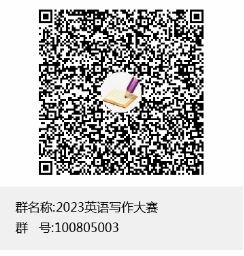 请所有已经在官网报名或有意向报名的同学加入QQ群:100805003(2023英语写作大赛),方便咨询问题、接收比赛通知和比赛结果信息。