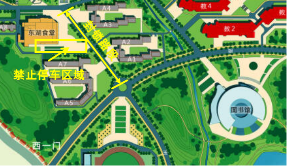 (一)由于活动布展需要,4月10日18:00起,东湖食堂南侧停车区域(东湖超市门口至东湖食堂南侧入口前)禁止车辆进入和停放。有停车需求的教职工请前往其他停车点。