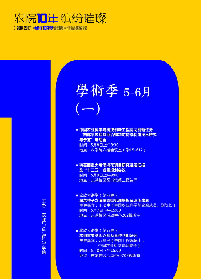 农学院10周年院庆活动公告:“学术季”(一)