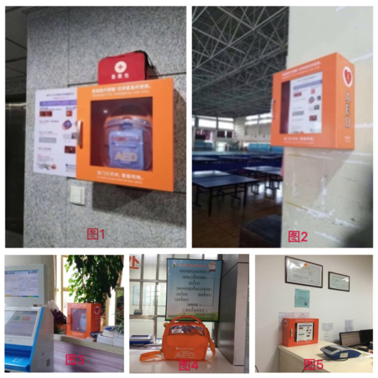 为进一步构建学校应急救护安全保障体系,在校领导的高度重视与大力支持下,校卫生所分别在东湖校区行政楼、东湖校区图书馆二楼大厅、风雨操场东入口、东湖校区卫生保健中心一楼、衣锦校区医务室等公共场所放置了5台自动体外除颤器(AED)。具体位置见下图: